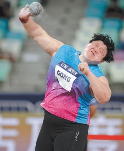 2024年世界田聯(lián)鉆石聯(lián)賽廈門站女子鉛球比賽,中國選手鞏立姣投擲鉛球。新華社記者 江 漢攝