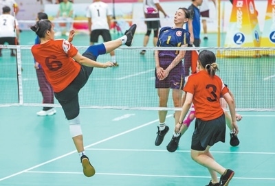 “好球!”“漂亮!”11月24日,海南三亞,第十二屆全國少數(shù)民族傳統(tǒng)體育運(yùn)動(dòng)會(huì)毽球項(xiàng)目比賽正酣。頭球、倒鉤球……激烈的回合、精彩的比拼,引來觀眾連連叫好。