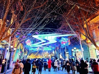 充滿節(jié)日氛圍的哈爾濱中央大街。