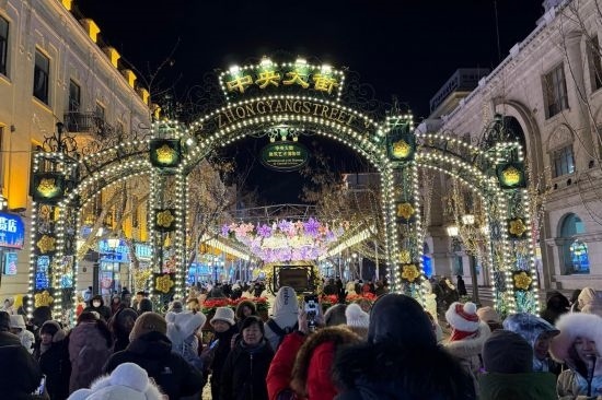 2024年12月26日,哈爾濱中央大街游人如織。新華社記者 楊思琪攝
