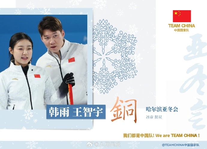 北京時(shí)間2月8日,哈爾濱亞冬會(huì)冰壺項(xiàng)目混雙決賽,中國隊(duì)組合韓雨/王智宇在與菲律賓隊(duì)的銅牌賽角逐中獲勝,收獲一枚銅牌,這是本屆亞冬會(huì)中國隊(duì)的首枚獎(jiǎng)牌。