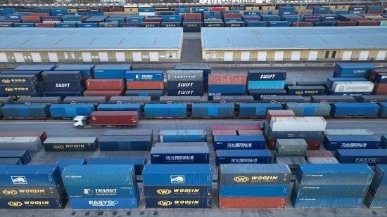 石家莊國(guó)際陸港的中歐班列裝車待發(fā)。