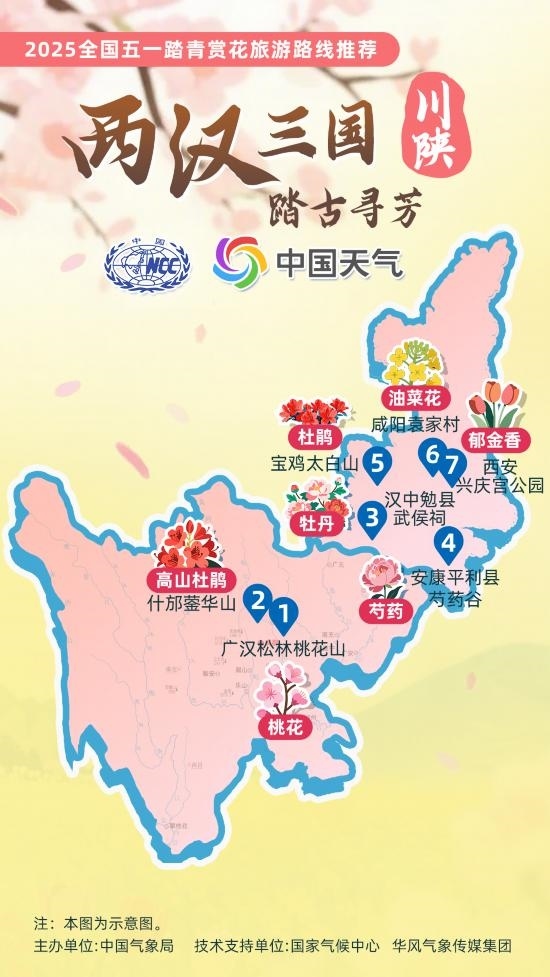 4月23日,中國氣象局參與文化和旅游部2025年全國“五一”文化和旅游消費周活動,推出12條 “五一踏青賞花旅游路線”。每一條路線,都串聯(lián)起春日里最動人的景致。在即將到來的五一假期,不妨從這些路線中挑選你心儀的一條,趁著春光正好,開啟一場與春日中國的浪漫邂逅。