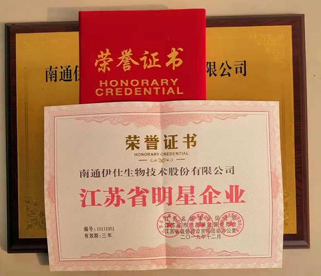 南通伊仕生物技術(shù)股份有限公司榮獲江蘇省明星企業(yè)稱號(hào) |