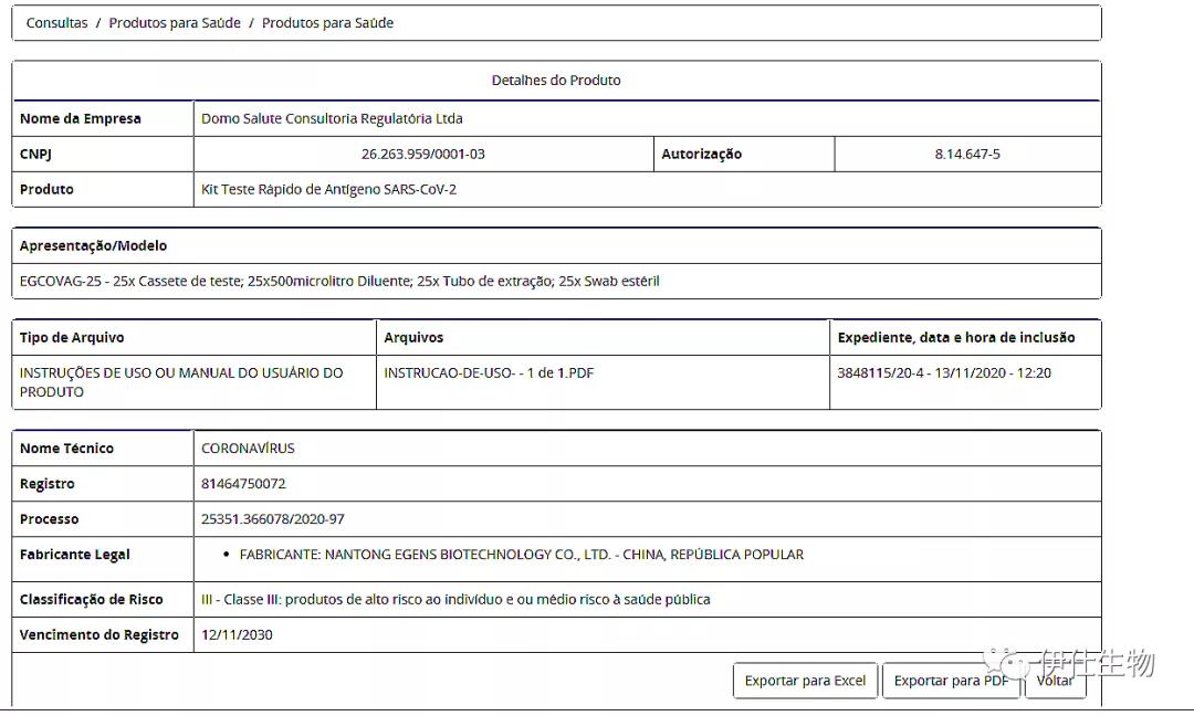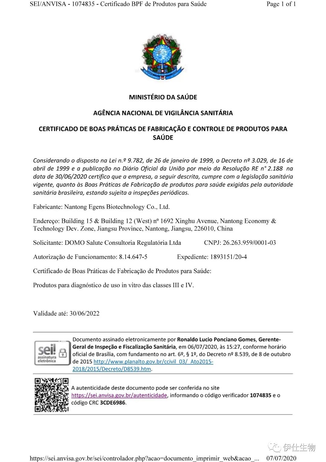 喜報(bào)!我公司在取得新冠病毒抗體檢測試劑巴西注冊(cè)證后,今取得新冠病毒抗原檢測試劑巴西注冊(cè)證。前期我司研制的新冠病毒抗體檢測、新冠病毒抗原檢測試劑均已獲得歐盟準(zhǔn)入資格。