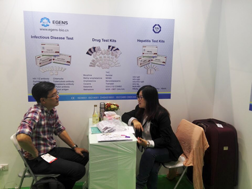 此次展會公司主要展示了自主研發(fā)的診斷試劑和分析儀。優(yōu)生系列,腫瘤標志物,傳染病系列,毒品系列還有 酶免系列。