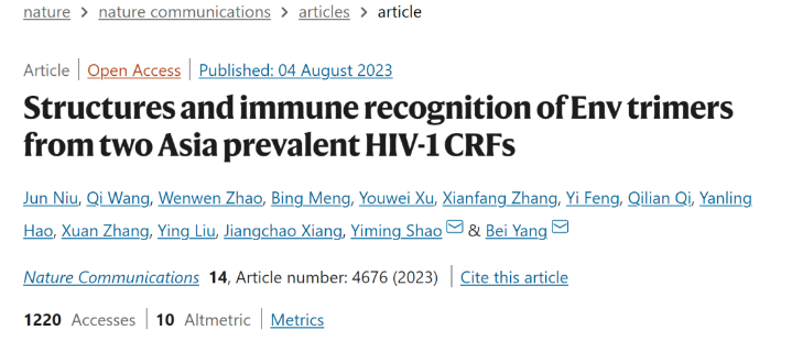 近日,上??萍即髮W免疫化學研究所楊貝課題組與中國疾病預防控制中心性病艾滋病預防控制中心團隊合作在國際學術期刊《自然通訊》(Nature Communications)上發(fā)表題為“Structures and immune recognition of Env trimers from two Asia prevalent HIV-1 CRFs”的研究論文,報道了我國HIV-1病毒的主流亞型(即流行重組亞型CRF01_AE和CRF07_BC)的Env蛋白結構與免疫識別特征,揭示了CRF01_AE亞型的Env蛋白在V1區(qū)域的獨有特征及其與該亞型的廣譜中和抗體逃逸能力之間的關系,并闡明了第一株分離自CRF01_AE感染個體的廣譜中和抗體的新型中和機制。該研究拓寬了對于HIV-1流行重組亞型的認識,為后續(xù)針對我國主流HIV-1亞型開展免疫聚焦型疫苗設計和相關廣譜中和抗體的應用開發(fā)提供了理論依據(jù)。