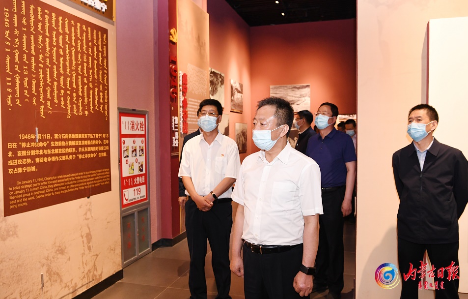 孫紹騁參觀集寧戰(zhàn)役紀(jì)念館,認(rèn)真聽取情況介紹。內(nèi)蒙古日?qǐng)?bào)社融媒體記者袁永紅攝