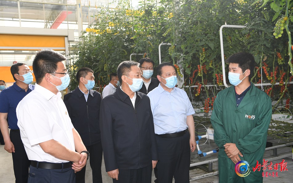 孫紹騁走進(jìn)宏?,F(xiàn)代農(nóng)業(yè)產(chǎn)業(yè)園無土栽培番茄智能化溫室,詳細(xì)了解土地流轉(zhuǎn)、產(chǎn)品銷售、項(xiàng)目建設(shè)及帶動(dòng)就業(yè)等情況。內(nèi)蒙古日?qǐng)?bào)社融媒體記者袁永紅攝