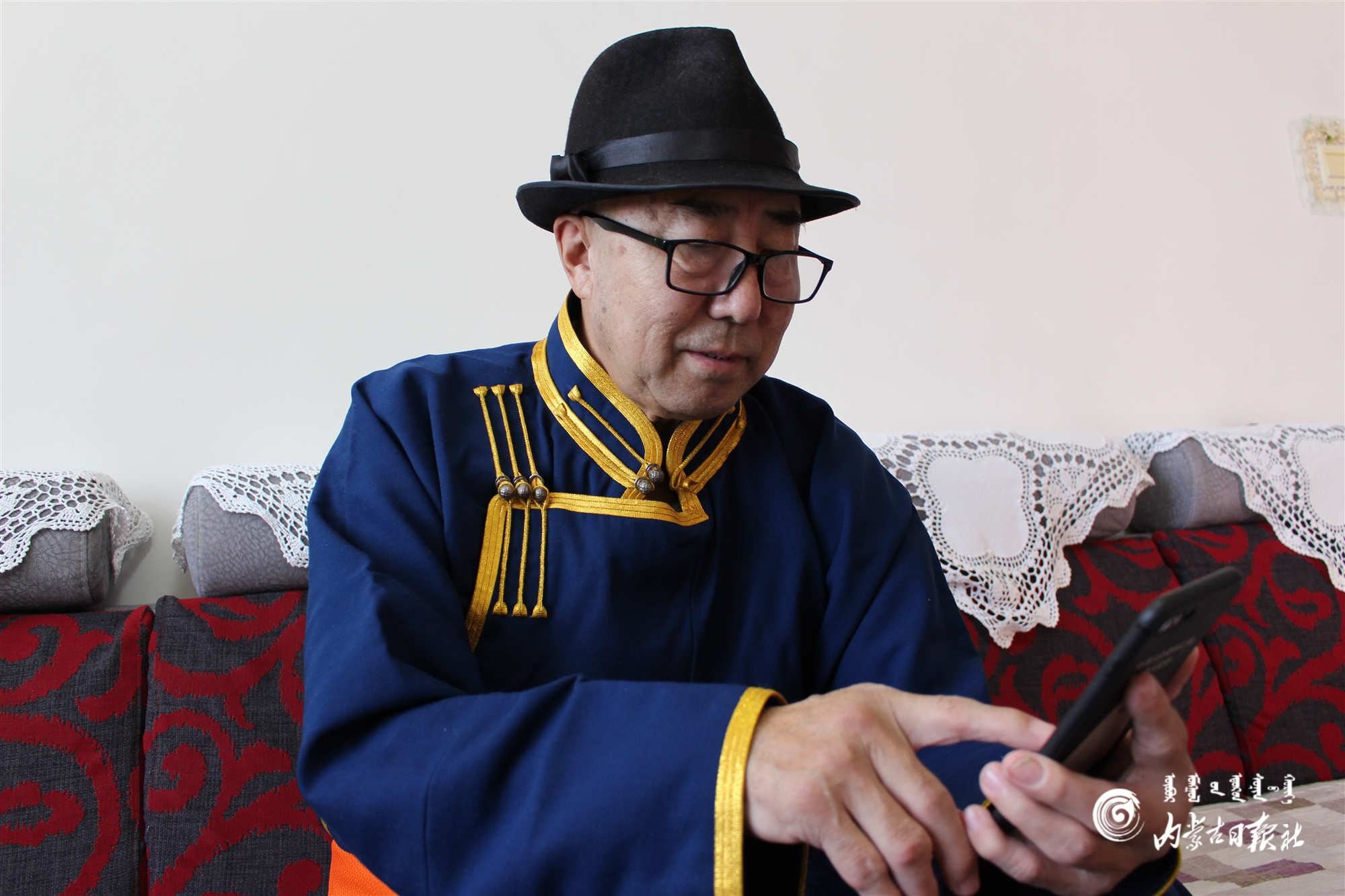 阿拉坦倉老人通過手機(jī)了解兩會信息。