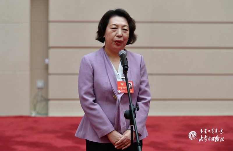 自治區(qū)政協(xié)委員金?;卮鹩浾咛釂?wèn)。內(nèi)蒙古日?qǐng)?bào)記者 馬建荃攝