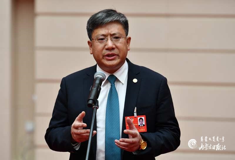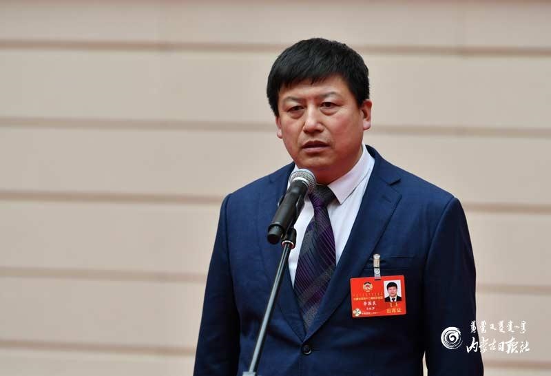 自治區(qū)政協(xié)委員李國(guó)良回答記者提問(wèn)。內(nèi)蒙古日?qǐng)?bào)記者 馬建荃攝